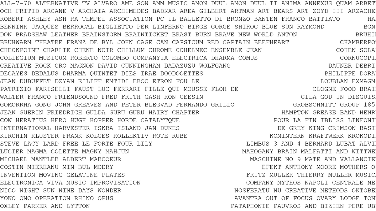 When the British industrial band Nurse With Wound released its debut album, Chance Meeting on a Dissecting Table of a Sewing Machine and an Umbrella, in 1979, it came with an insert that featured the names of 291 artists that acted less like a thank-you list and more like an anarchic bibliography of the avant-garde. I dug into the "Nurse With Wound List," as it came to be called, in the mid-2000s as a peer-to-peer network nerd on the hunt for obscure music: Amon Düül (and Amon Düül II), Karlheinz Stockhausen, Univers Zero, Magical Power Mako, Henry Cow, Debris', Franco Battiato, Taj Mahall Travellers, Iannis Xenakis — decades of radical music made by radical people.