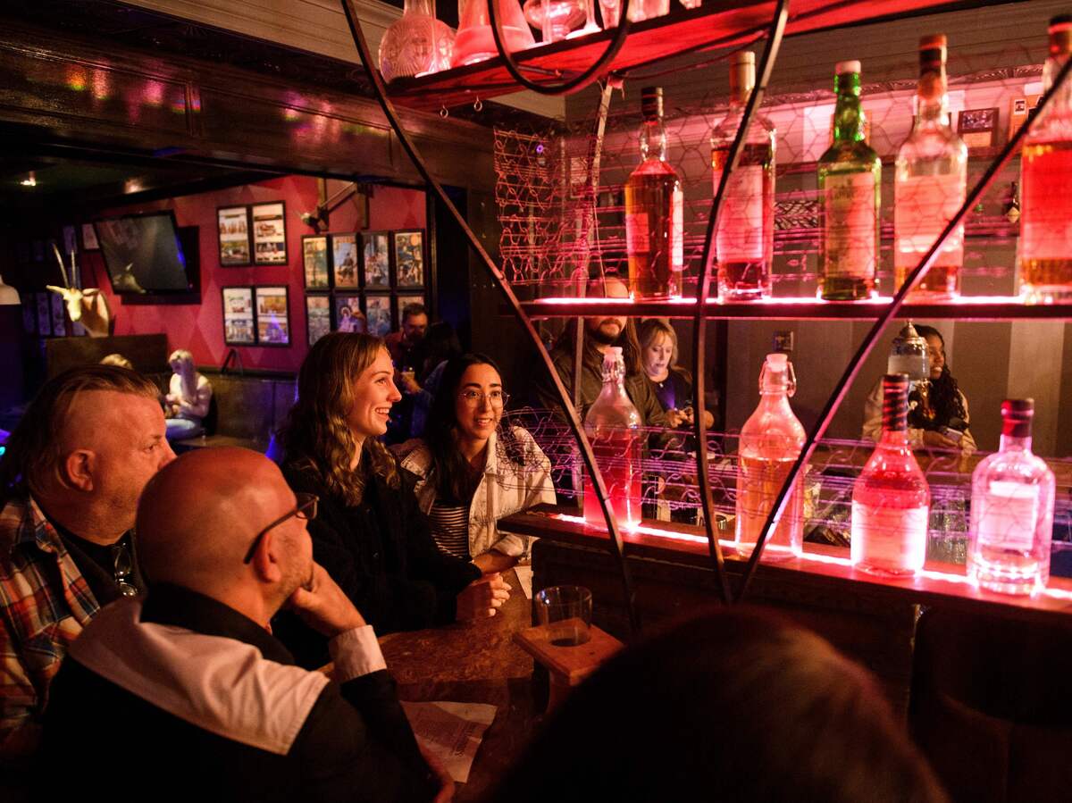 Customers gather at a bar in Los Angeles. Across the U.S., life is beginning to approach something close to normal.