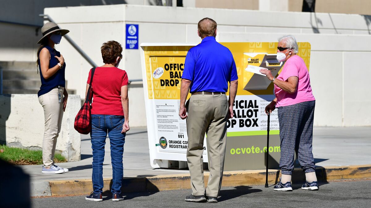 Voters drop off their ballots at an official ballot drop-box in Orange County, Calif., earlier this month. More than 35 million people have already cast their votes, with two weeks to go before Election Day.