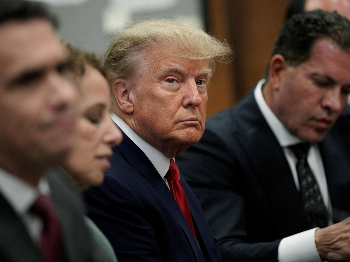 Former US president Donald Trump appears in court at the Manhattan Criminal Court in New York on April 4, 2023.