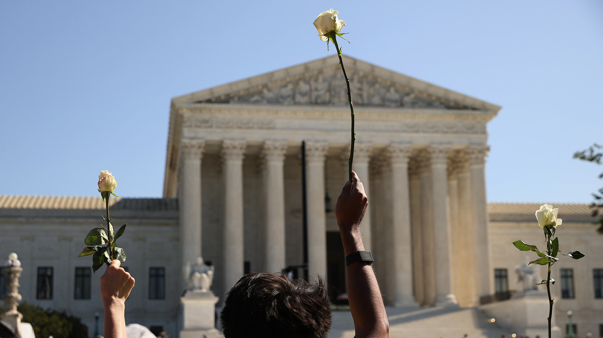 Members of CASA, an advocacy organization for Latino and immigrant people, hold up white roses in honor of Justice Ruth Bader Ginsburg at the Supreme Court on Wednesday.