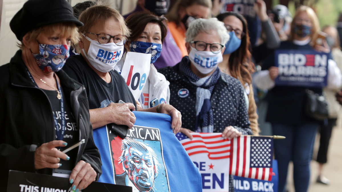 Supporters wait to greet Democratic U.S. presidential nominee Joe Biden at Greensburg Amtrak Station September 30 in Greensburg, Pennsylvania.