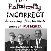 Noel Yates, Diane Beyer, David Rosen and Dan Fein are Totally Incorrect. They will present their version of a tribute to the late great Tom Lehrer on October 11, at 7:30, at the Sebastopol Center for the Arts. Three of the four stopped by to share a few songs and stories. Have a listen!