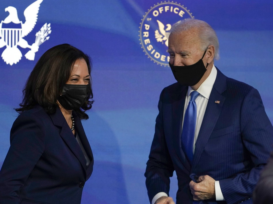 (Photo: Vice President-elect Kamala Harris and President-elect Joe Biden last week in Wilmington, Del. They were formally elected Monday by the Electoral College - Susan Walsh / AP).