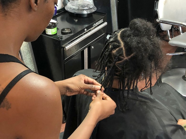 (Photo: An employee at Exquisite U hair salon in Sacramento, Calif. braids the hair of a customer - Kathleen Ronayne / AP file Photo, 2019)