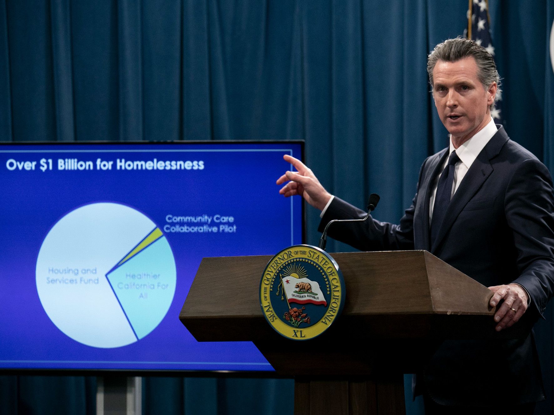(Photo: California Gov. Gavin Newsom presents his proposed 2020-2021 state budget Jan. 10, 2020 - Andrew Nixon / CapRadio)