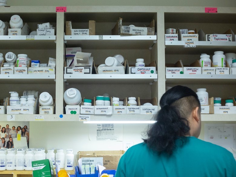 (Photo: A pharmacy tech fills prescriptions at La Clinica in Oakland on September 26, 2019 - Anne Wernikoff for CalMatters/via CapRadio)