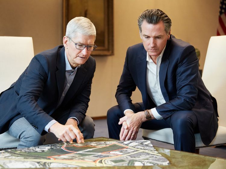 (Photo: Apple CEO Tim Cook and California Gov. Gavin Newsom unveiled the tech company's plan to help ease the housing crisis, with Apple pledging $2.5 billion for mortgages, development and other initiatives - Photo courtesy of Apple)