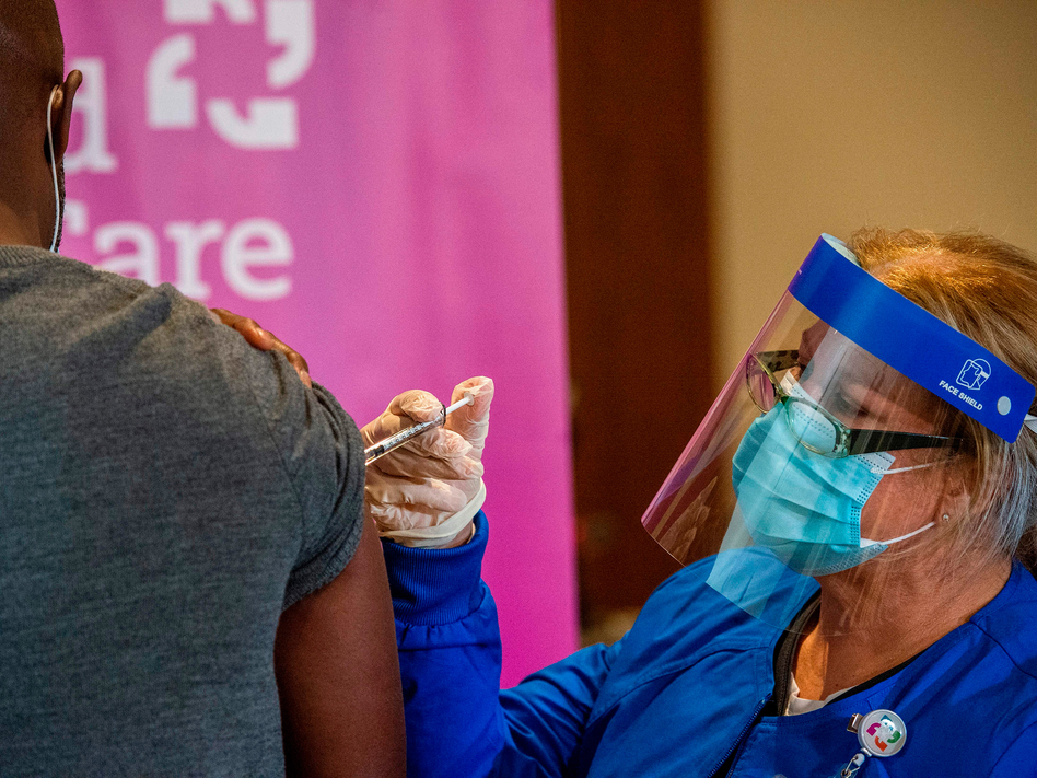 (Photo: A nurse applies a COVID-19 vaccine at a vaccination site at The Forum Thursday, Feb. 11, 2021, in Inglewood, Calif. - AP Photo/Marcio Jose Sanchez)
