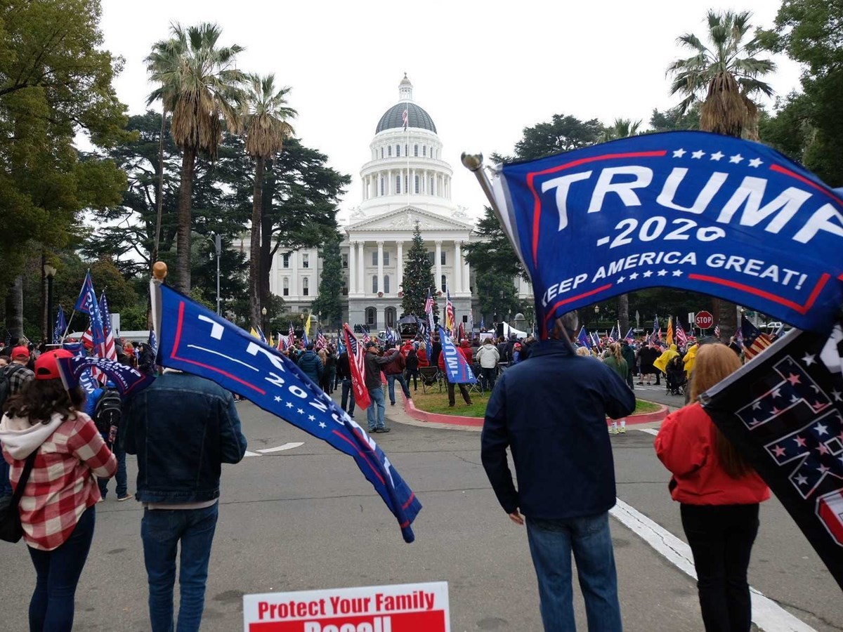 (Photo: Pro-Trump demonstrators march near the Capitol on Jan. 6, 2021 - Andrew Nixon / CapRadio).