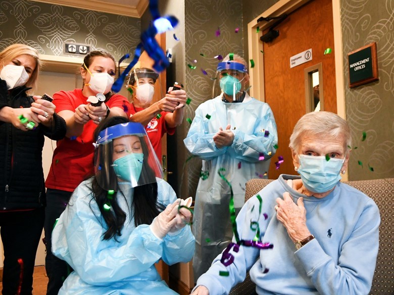 (Photo: Residents of a long-term care facility in Connecticut receive COVID-19 vaccinations on December 18th – Courtesy of CVS Health)