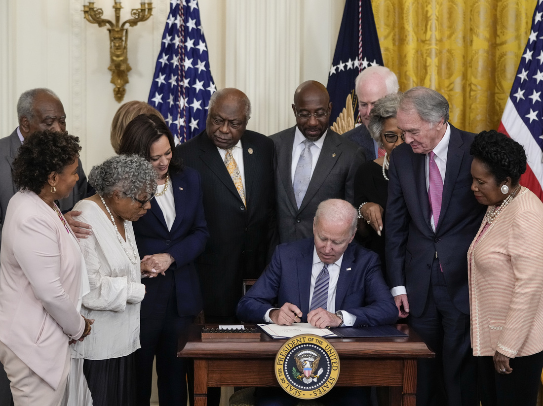 President Biden signs the Juneteenth National Independence Day Act into law on Thursday.