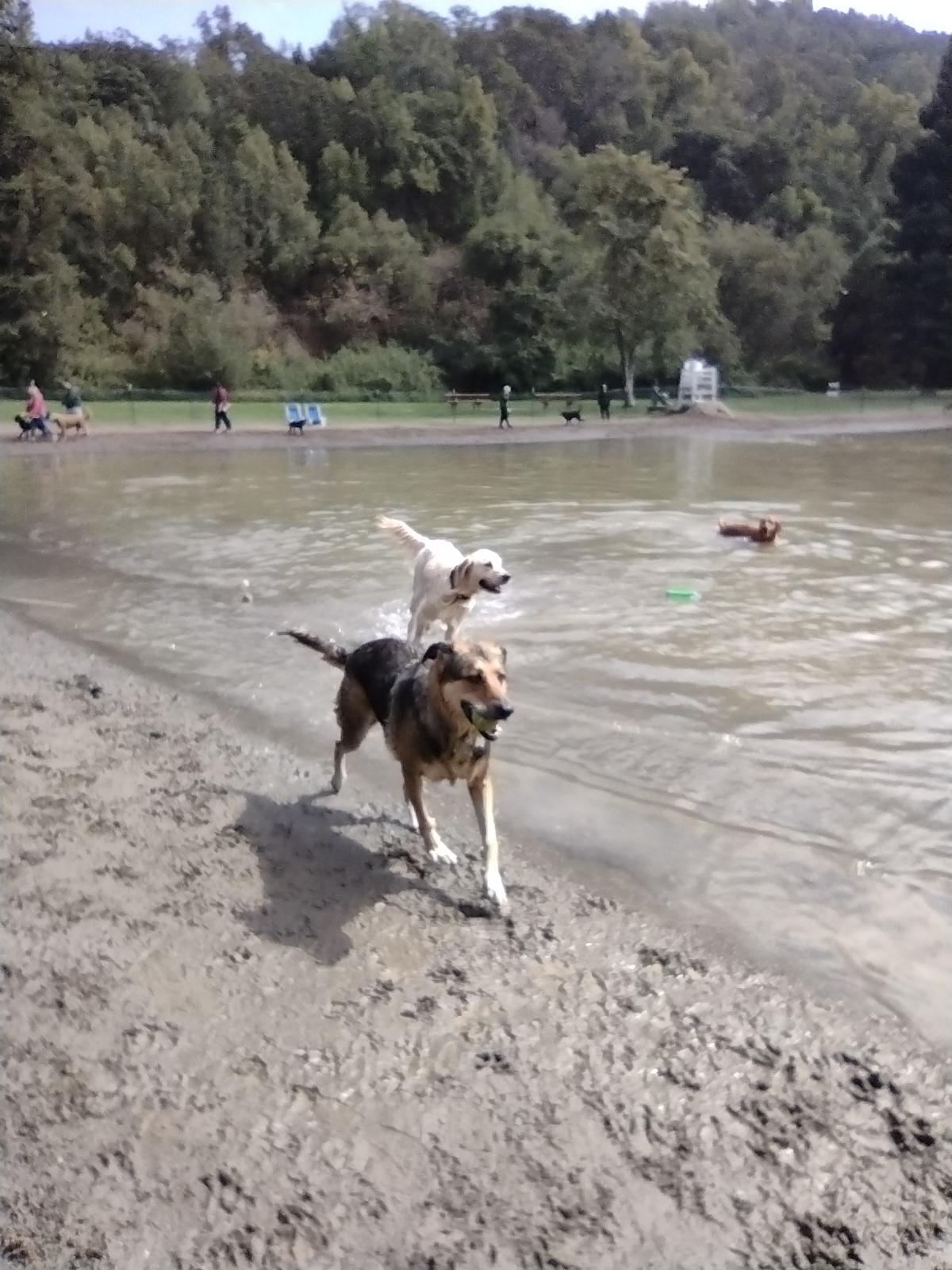 Puppies enjoy the annual Water Bark at Spring Lake Regional Park in Santa Rosa.
